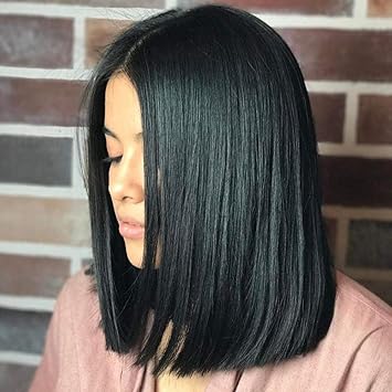 Amazoncom 1b Black Human Hair Short Bob Lace Front Wigs For